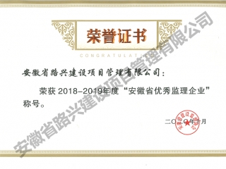 2018—2019年度 安徽省優(yōu)秀監(jiān)理企業(yè)