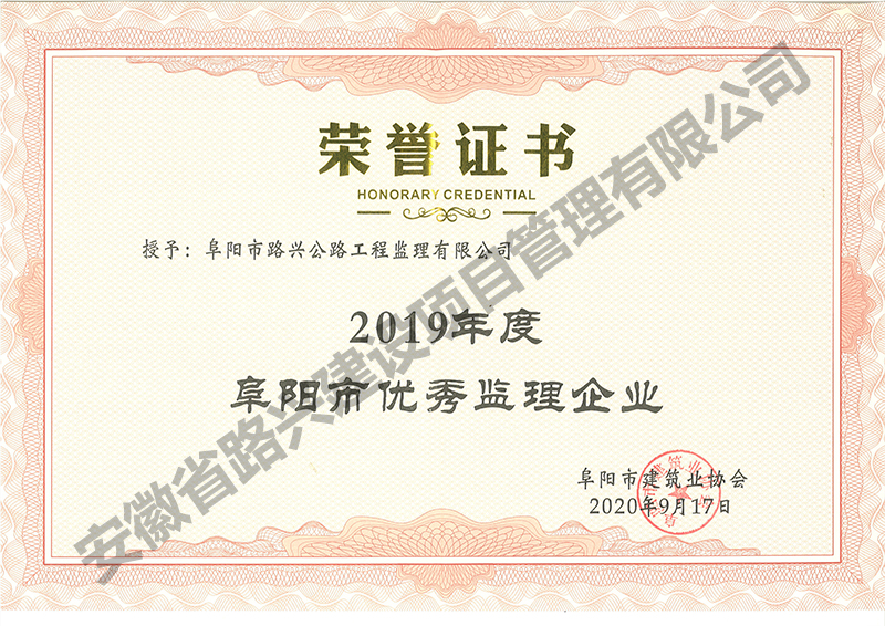 2019年度阜陽市優(yōu)秀監(jiān)理企業(yè)