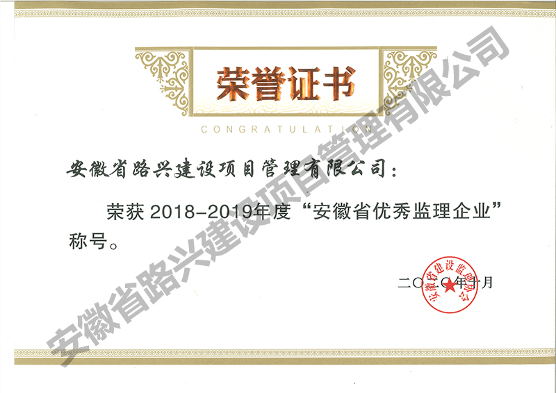 2018—2019年度 安徽省優(yōu)秀監(jiān)理企業(yè)