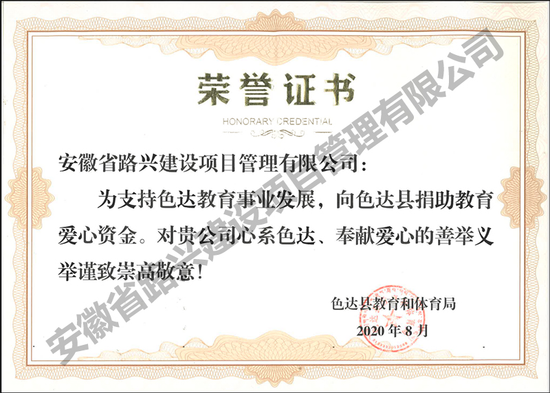 捐助色達(dá)縣教育愛心資金—榮譽(yù)證書