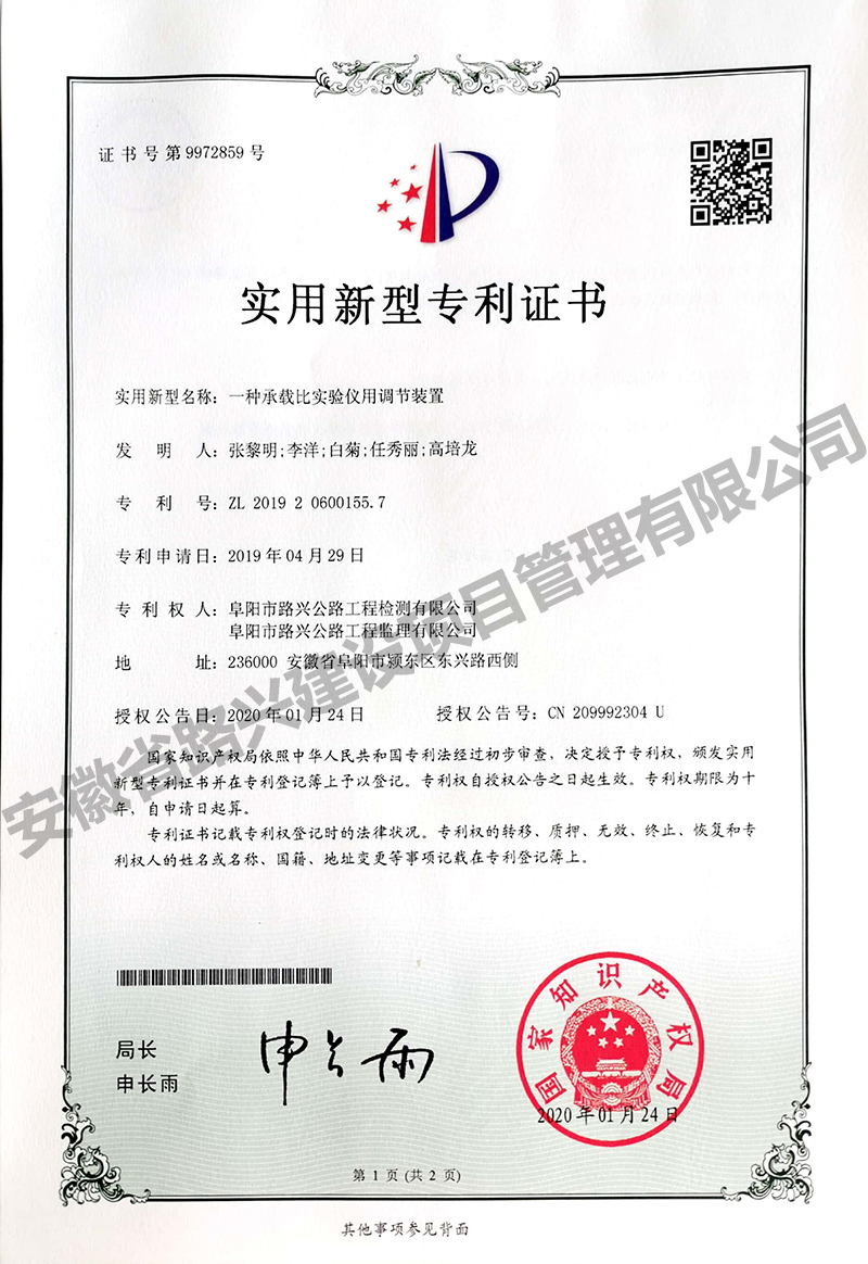 實(shí)用專利:一種承載比實(shí)驗(yàn)儀用調(diào)節(jié)裝置