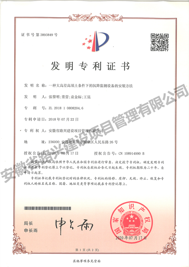 發(fā)明專利:一種大高差高填土條件下的沉降監(jiān)測(cè)設(shè)備的安裝方法