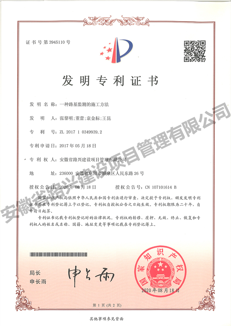 發(fā)明專利:一種路基監(jiān)測的施工方法
